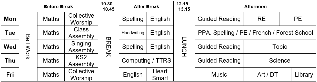 Please see below our class timetable: