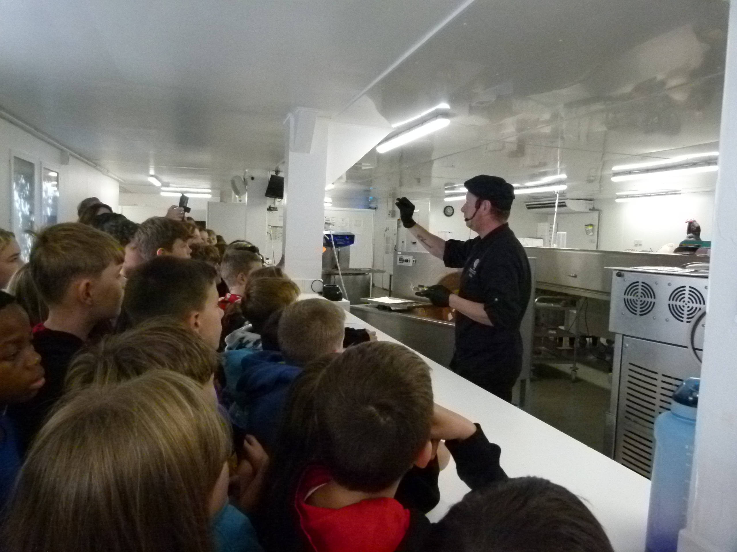Here we learnt all about the growing and harvesting of cocoa beans and how these are roasted and made into cocoa paste and butter to make chocolate. The smells were very tempting and we got to taste the cocoa at each stage of the chocolate making process.