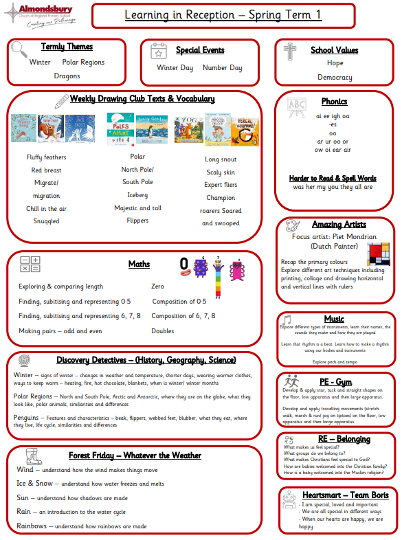 This term we will be exploring Winter and the Polar Regions. We will be ending the term learning about dragons!